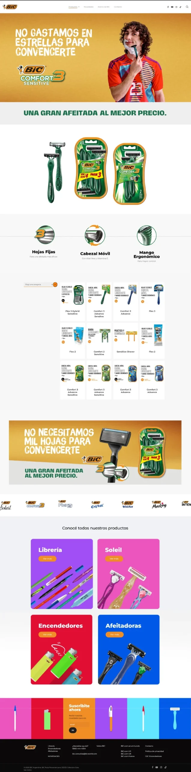Además se sumo al reto de hacer una página hibrida, el de compaginar la identidad creada con la nueva imagen de marca lanzada por BIC Global este mismo año. Para el desarrollo utilicé de base una plantilla de wordpress Saas y sume los plugins necesarios para que se viera dinámica, atractiva y a medida.