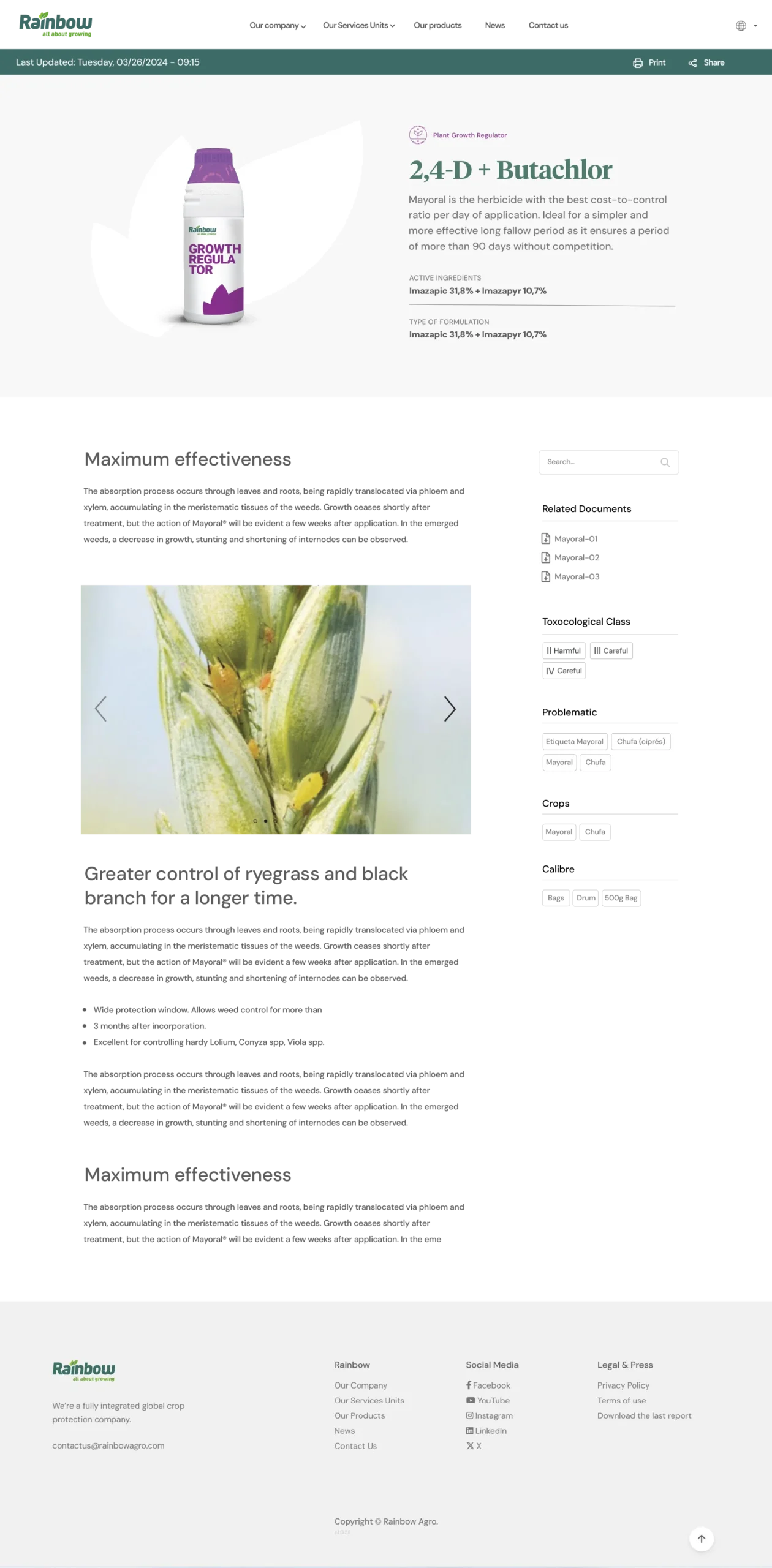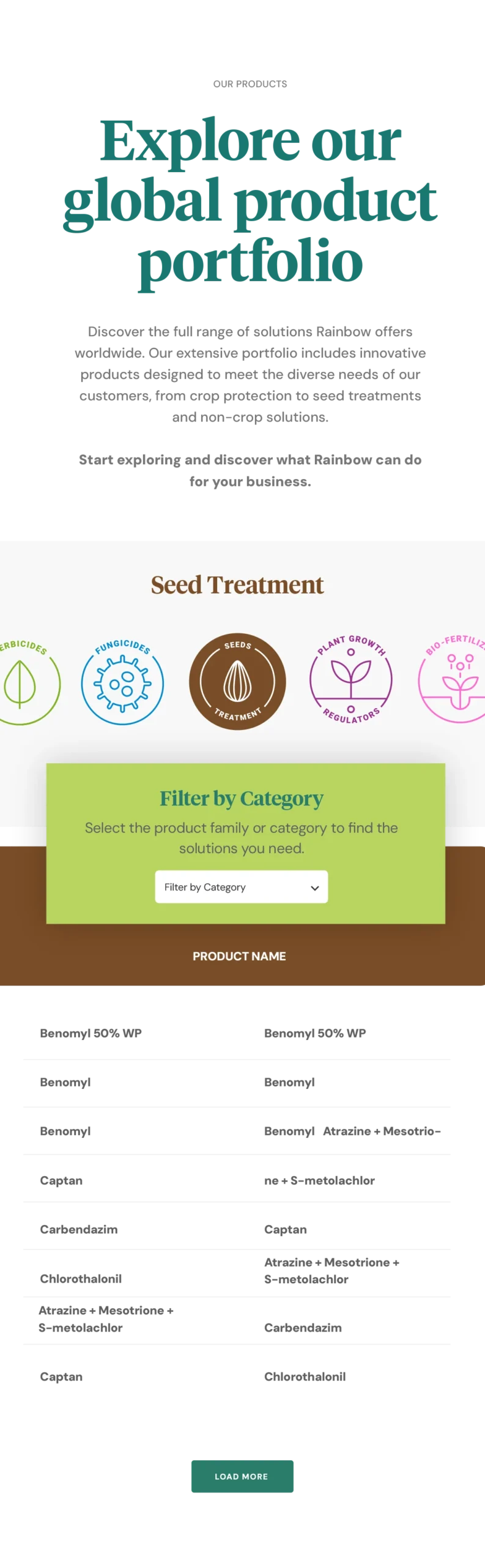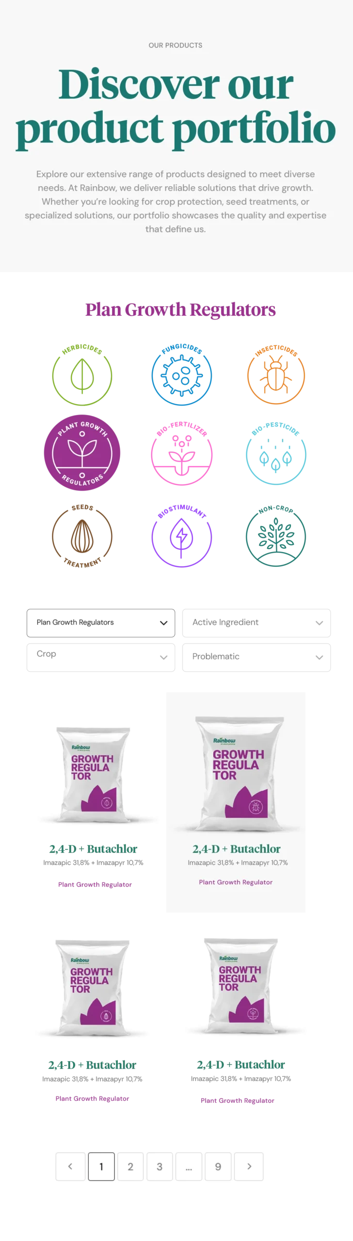 Diseño y maquetación del sitio web corporativo de Rainbow Agro, empresa global de protección de cultivos con presencia en más de 100 países. Traducción del propósito de marca —conexión, crecimiento colectivo, confianza y sostenibilidad— en una experiencia digital clara, coherente y escalable. Desarrollo de una arquitectura visual y de contenidos pensada para su adaptación a múltiples países e idiomas, asegurando consistencia de marca, flexibilidad editorial y una experiencia de usuario alineada tanto a una audiencia global como a necesidades locales.
